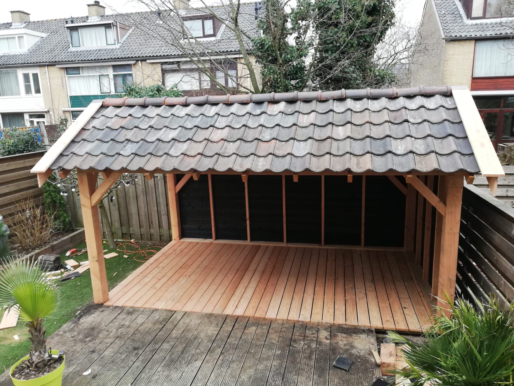 Ontdek de veelzijdigheid en maatwerkopties van onze overkappingen met diverse dakconstructies en vloermogelijkheden. Of je nu de voorkeur geeft aan een klassiek zadeldak, de landelijke uitstraling van een kapschuur, de strakke look van een plat dak, de elegantie van een pergola, of de functionele bescherming van een carport – wij bieden een scala aan stijlen om aan jouw wensen te voldoen.