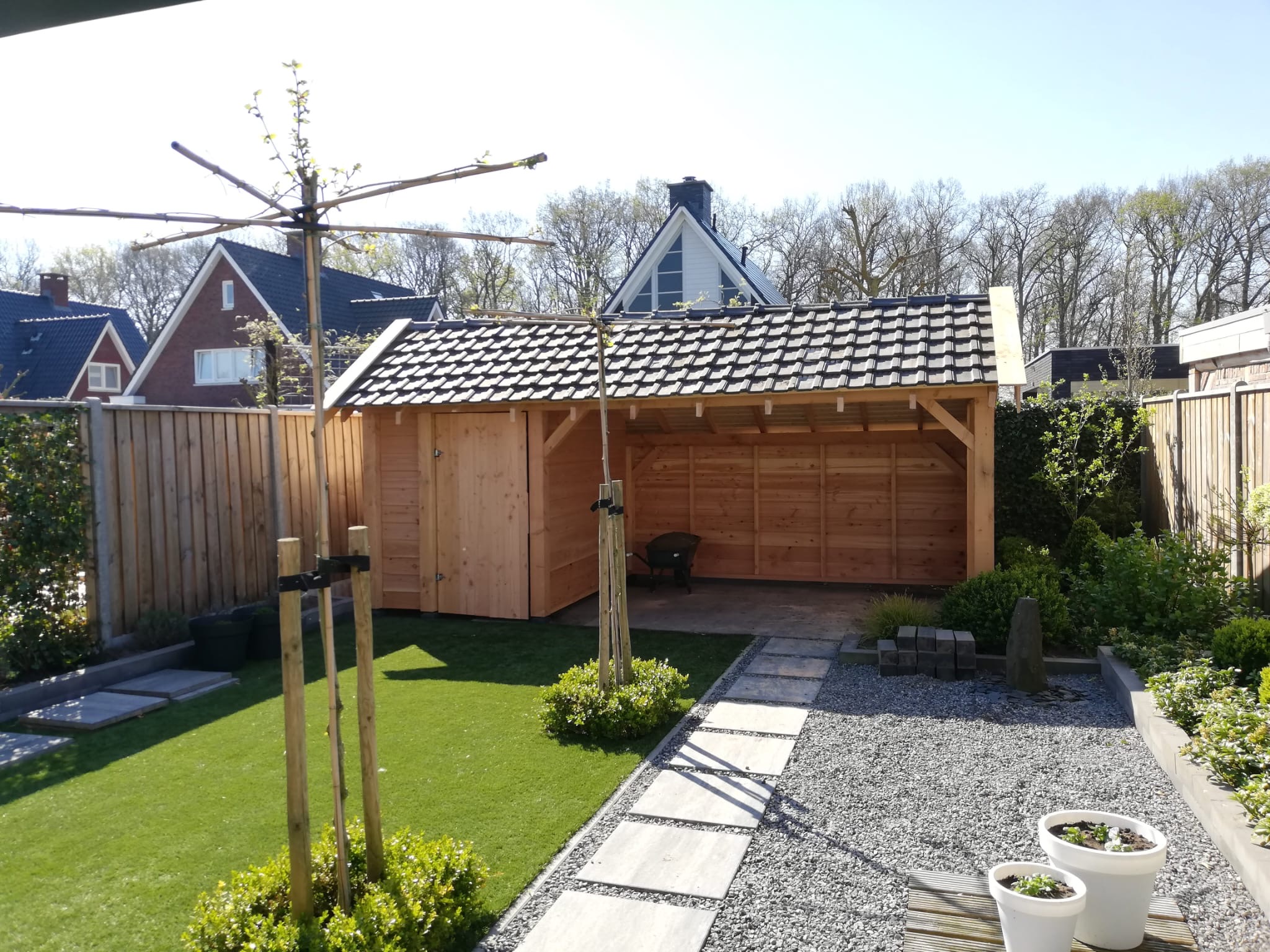 Voor een modern en strak uiterlijk is een plat dak een uitstekende keuze, terwijl een pergola een open en luchtige structuur biedt die perfect is voor het creëren van een schaduwrijke plek in je tuin. En voor praktische bescherming van je voertuig of als extra buitenruimte, is een carport ideaal.